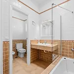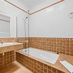 Der er et badeværelse med et bidet, separat toilet og et badekar.